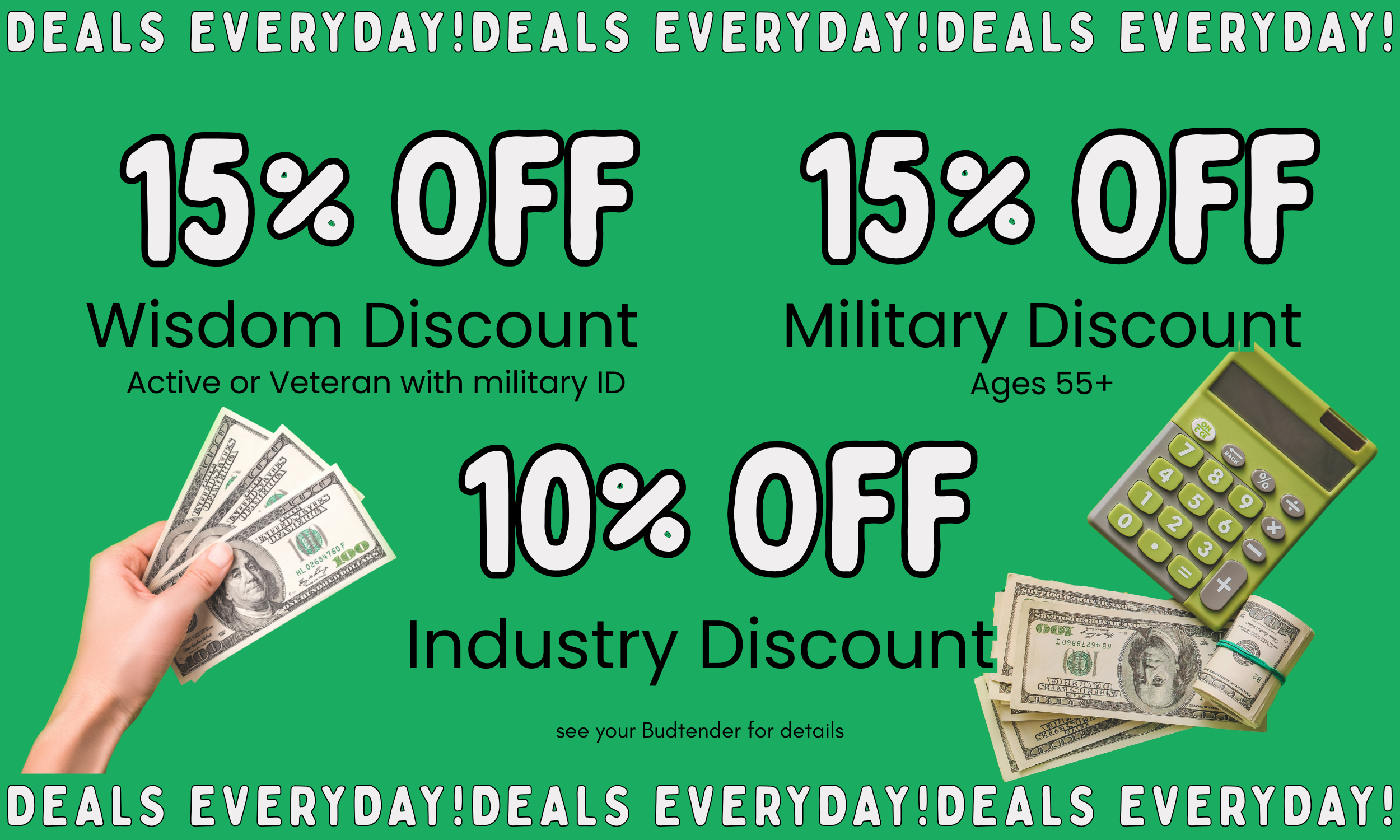 *see a budtender for details