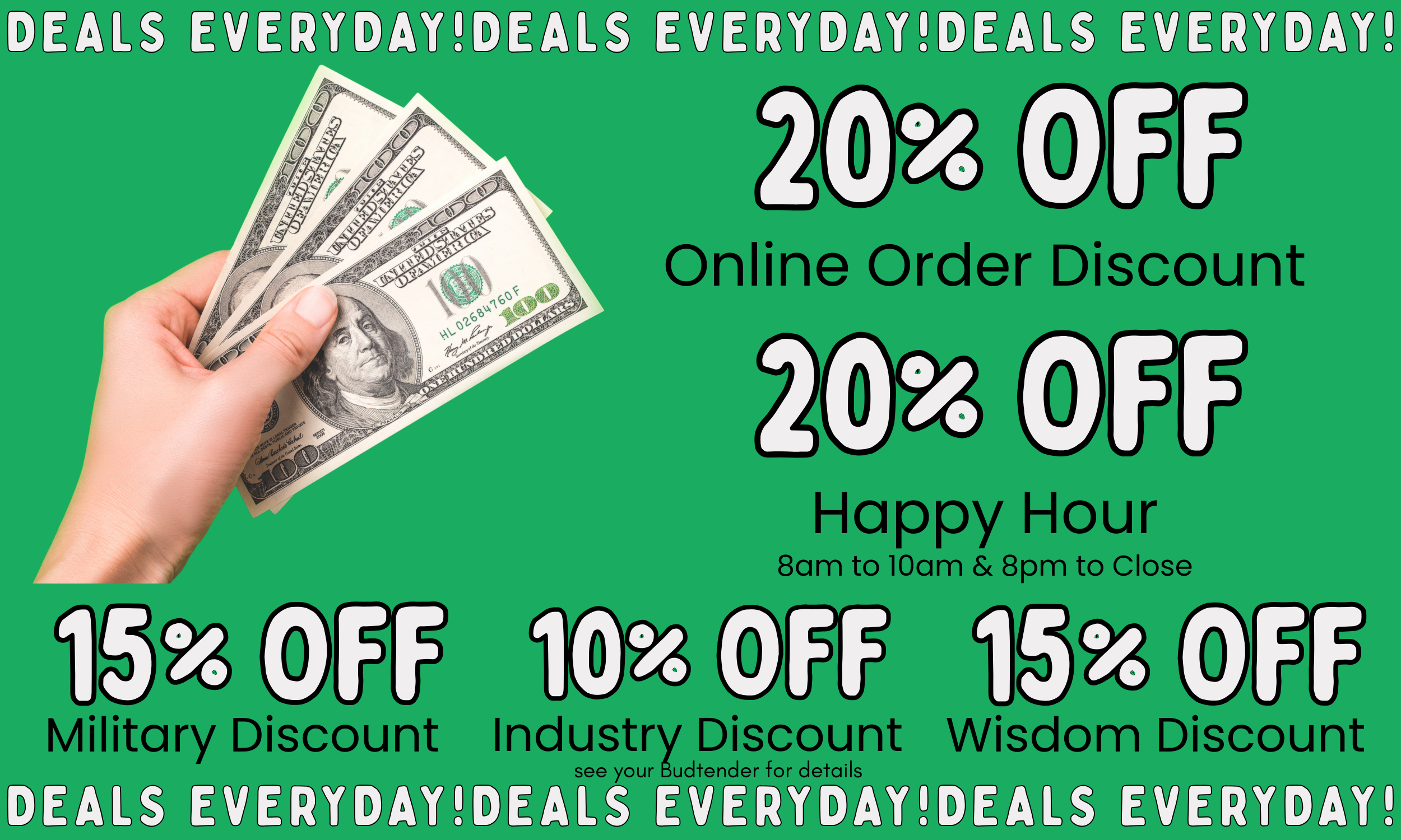 *see a budtender for details